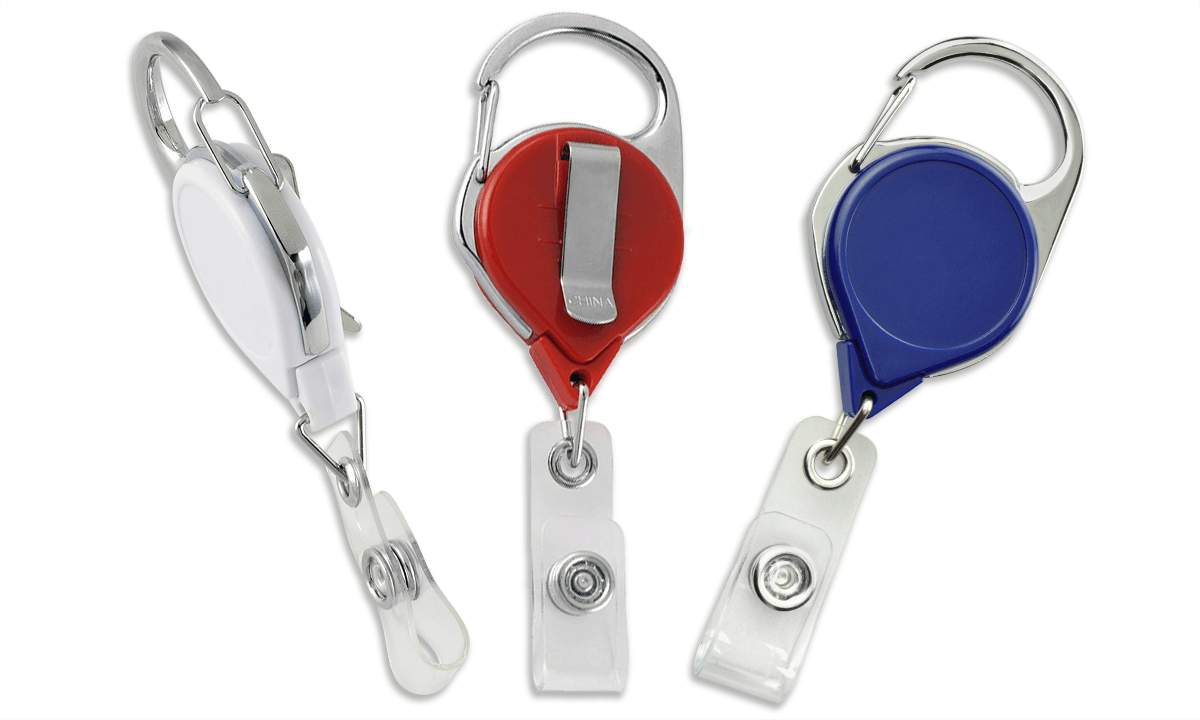 Get two attachments in one with our carabiner-style reel!This badge-reel with outer chrome carabiner frame also features a belt clip on the back. Its no-twist U-shaped bullet helps to keep your ID facing forward.