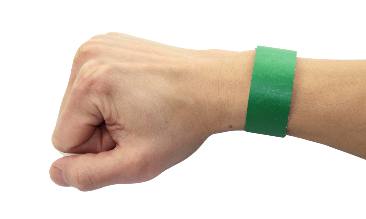 Tyvek wristbands, also known as "paper wristbands", are the most economical choice! 19mm Tyvek wristbands are great for quick and easy identification. These personalised paper wristbands are tear-resistant and have a strong adhesive closure that prevents the band from being transferred to another person. Tyvek wristbands are ideal for short stays (about 1-2 days in duration). Choose from 25 vibrant, highly visible colours below and start designing your wristband. All imprints are printed in BLACK only.